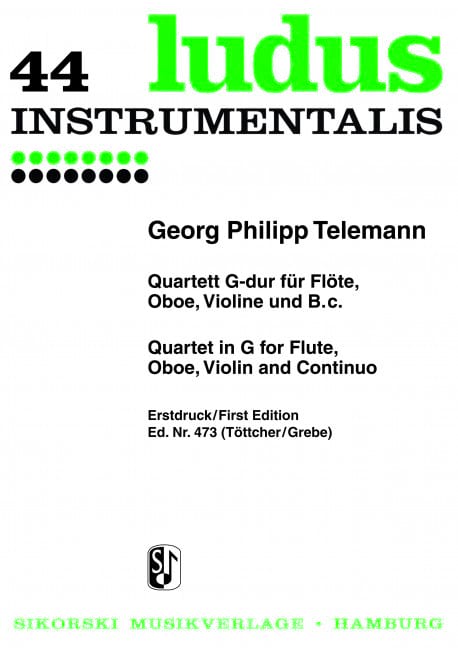 Georg Philipp Telemann Quatuor en Sol Majeur pour Flûte, Hautbois, Violon et BC